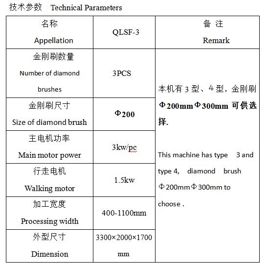 QLSF-3 full-automatic water-washing antique machine can grind ideal antique plates. The control system of this machine adopts advanced PLC, touch screen, and full intelligent control. The conveyor belt can be continuously brushed. The beam swings through the linear rail. The processing accuracy is high, the performance is stable, and the operation is simple. The fully automatic control slate is successfully completed at one time. The biggest advantage of this machine is: it has a copying function, double air pressure control, and plate entry. The detection switch is continuously improved from the original mechanical switch to an electronic detection switch, which improves the accuracy of entering the board, thereby reducing the damage of the switch and increasing the service life of the detection switch.